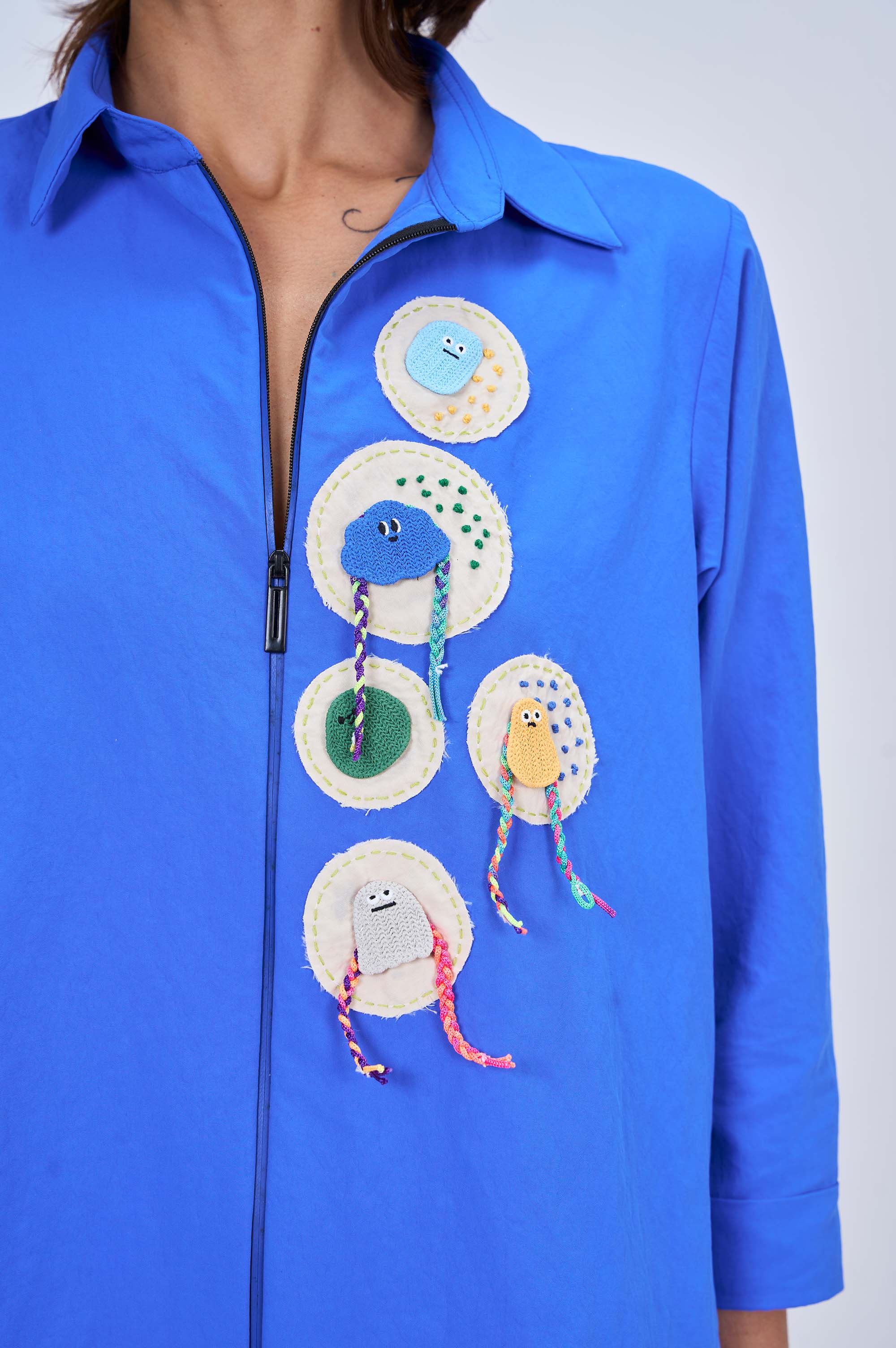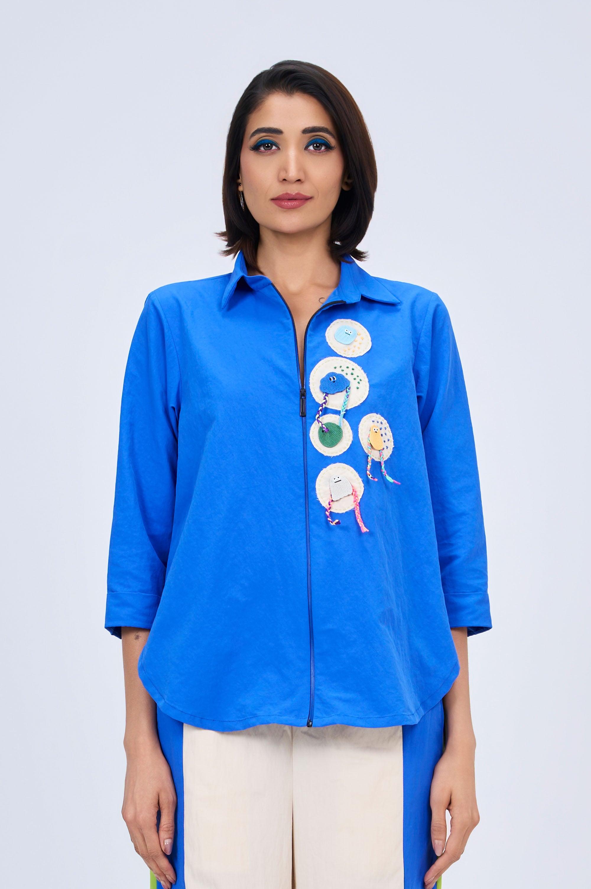 Doodle as a co ord is bold, fun, and unmistakably expressive. The statement shirt pairs with wide leg pants featuring contrast blue and green panels, creating a balanced play of colour and movement. Designed to be worn together or mixed and matched, Doodle is easygoing, spirited, and full of personality.